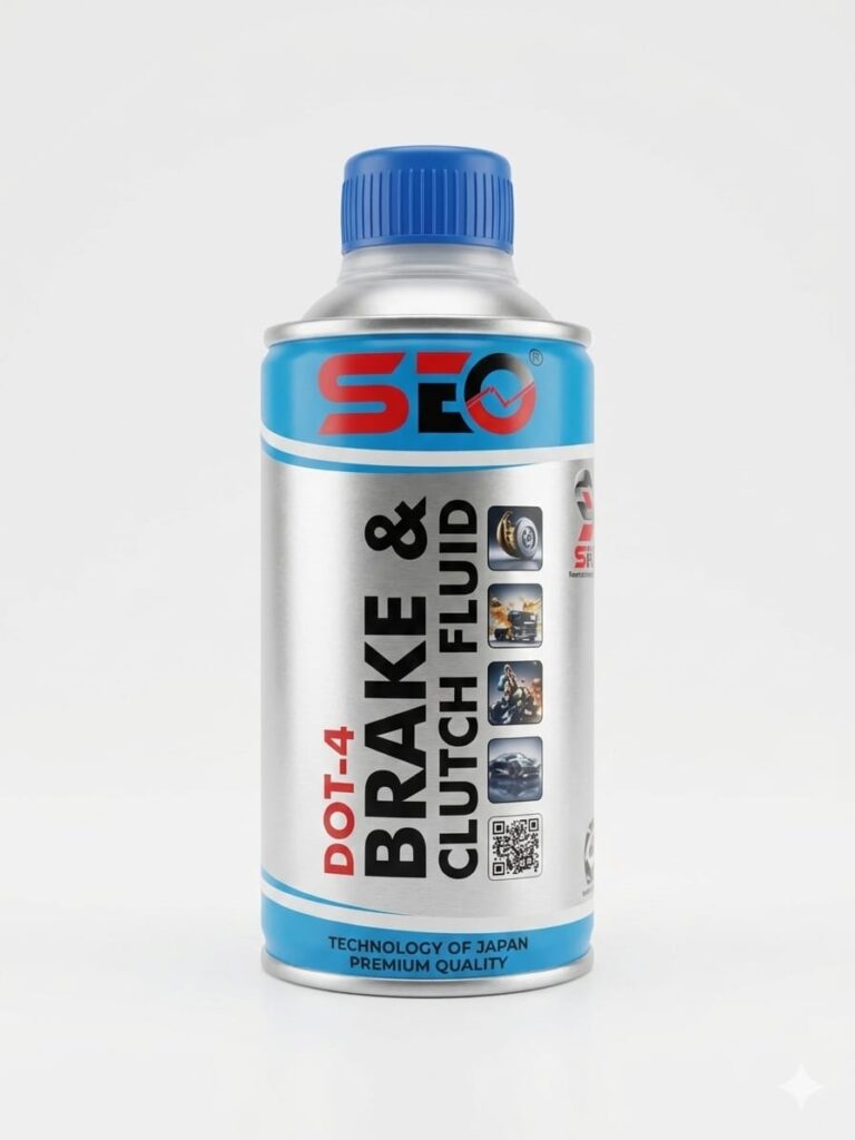 SEO BRAKE FLUID DOT 4 is a high performance poly glycol based brake fluid specially designed for use in disc, drum & Anti-locking Brake Systems (ABS) of any commercial vehicles, passenger cars and motorcycles operating under moderate to severe conditions and requiring a DOT 4 type of fluid.